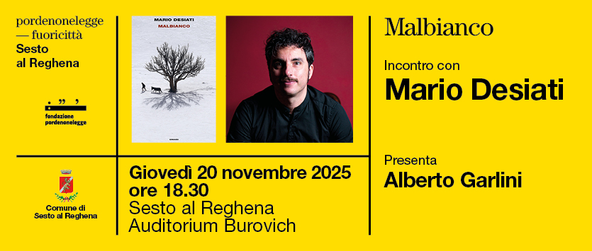 Vincitore del Premio Strega 2022 con Spatriati, lo scrittore Mario Desiati si ripresenta ai suoi lettori con Malbianco (Einaudi, 2025), un romanzo che intreccia memoria familiare e rimosso collettivo, finalista del Premio Internazionale Flaiano 2025. L’occasione per sfogliarlo arriva attraverso il cartellone di “pordenonelegge Fuoricittà_Autunno” che farà tappa giovedì 20 novembre a Sesto al Reghena, alle 18.30 nell’Auditorium Burovich: un evento promosso da Fondazione Pordenonelegge.it in sinergia con l’Amministrazione comunale di Sesto al Reghena, a cura di Gian Mario Villalta, Alberto Garlini e Valentina Gasparet. Ingresso gratuito, possibilità di prenotazione attraverso il proprio account mypnlegge. Info: 0434.1573100 mail [email protected]. Con Mario Desiati converserà lo scrittore Alberto Garlini, curatore di pordenonelegge.